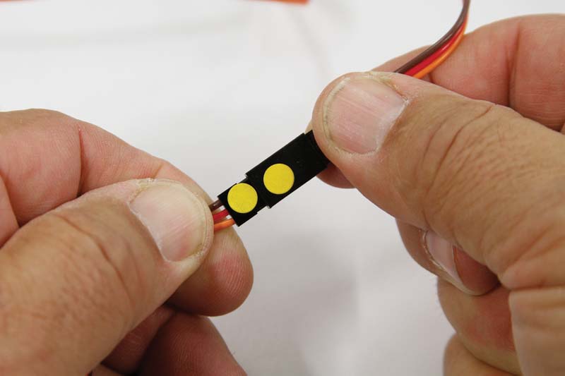 When assembling and disassembling your airplane at the flying field, you can easily mix up the servo leads and extension leads plugged into your receiver. A quick and easy way to identify the matching connectors is to use small stick-on color dots. If you can’t find small ones, you can use a paper punch and make your own from different color file ID labels. Jack Beckman, Burbank, California